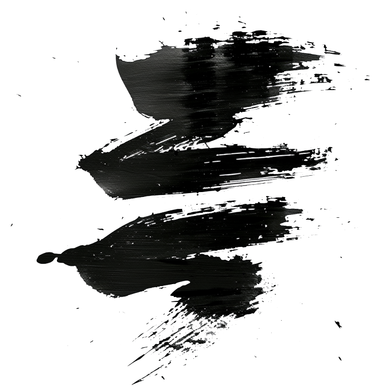 Abstract black brush strokes on a white background, creating a dynamic, artistic pattern.