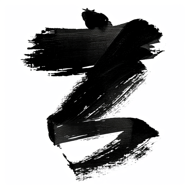 Abstract black brush strokes on white background forming a stylized letter 'Z'.